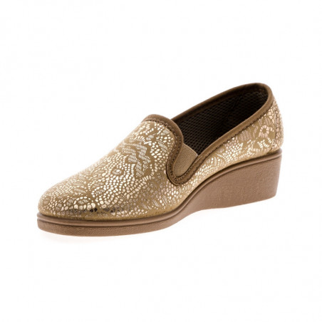 Kuldsed tekstiilist jalatsid, millel on mugav platvorm.