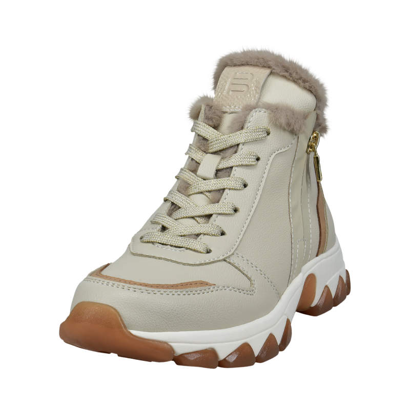 Beežid, moodsa stiiliga naiste saapad kunstkarusnahast voodriga sees.