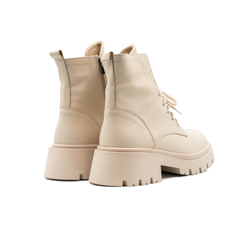 Beeži värvi kaasaegsed naiste saapad, mille sees on kunstkarusnahast vooder.