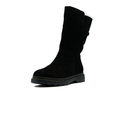 Moodsas stiilis mustad naiste pikad saapad, mille sees on vildist soojendus.