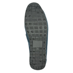 Sinised mokassiinid on kaunistatud õmbluste ja erinevate detailidega.