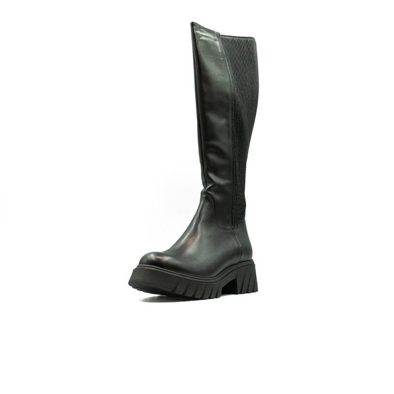 Mustad pika säärega saapad on mugava 5 cm kõrguse kontsaga ja villase voodriga.