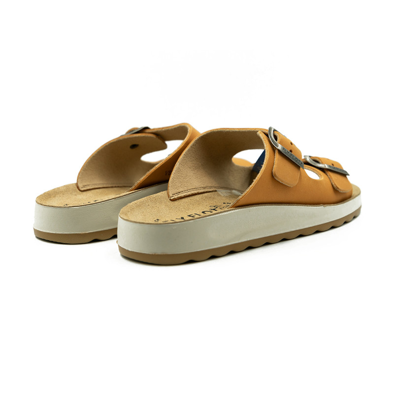 Kaasaegse disainiga oranžist nahast naiste plätud.
