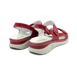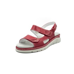 Nahast naiste sandaalid erkpunase ja valge tallaga. Kontsa kõrgus 4,5 cm. Varvaste ja jalavõlvi kohal takjaribaga kinnitused, mis võimaldavad hõlpsasti laiust reguleerida. Kergus ja eksklusiivsus Sinu jalgel!