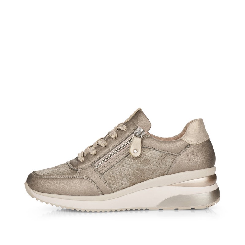 Pruun - metallik värvi, nahast sportlikud jalatsid naistele.