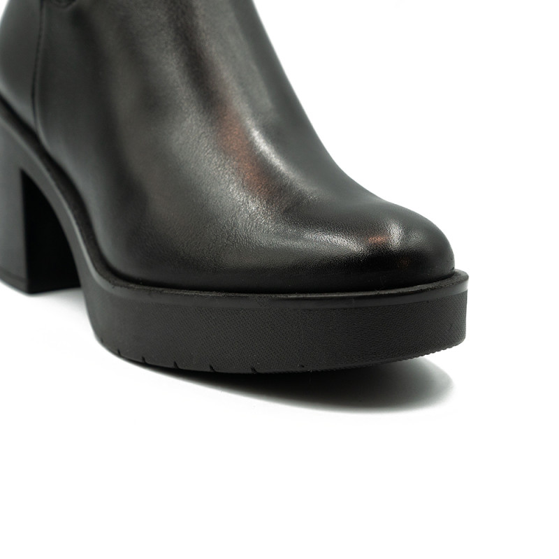Klassikalised mustad nahast pika säärega saapad, mugava 7 cm kõrguse tallaga.